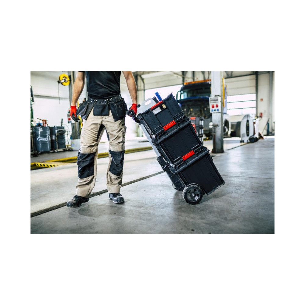 • A Technik a Qbrick legfejlettebb változata, amely innovatív alumínium rögzítősínekkel van felszerelve, amelyek lehetővé teszik a pillanatszorítók használatát a szerszámos ládán.