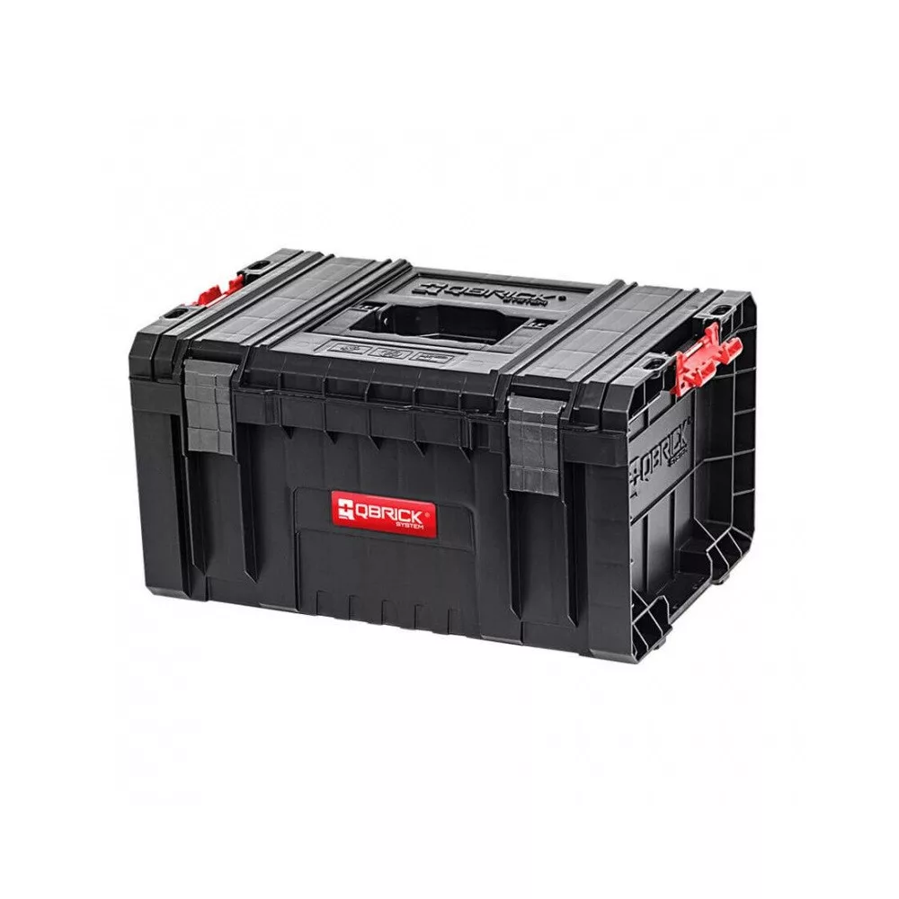 • A Qbrick System PRO Toolbox egy tágas, moduláris szerszámosláda, amely alapfelszereltségként számos funkcióval rendelkezik: rugalmas fedéltömítés a magas por- és vízállóságért, 3 állítható terelőlap, oldalsó csatlakozók, valamint szupermasszív poliamidból készült elülső rögzítők.