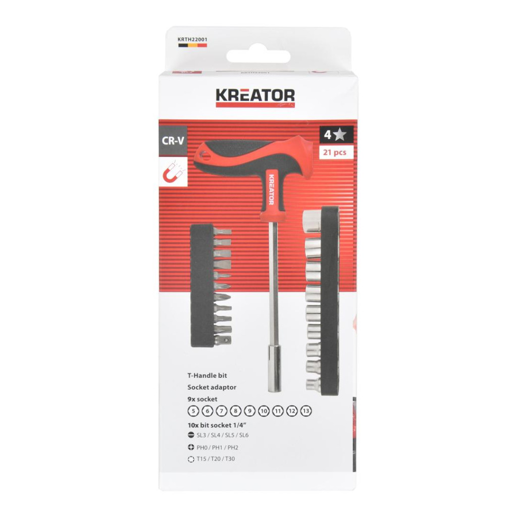 Kreator csavarhúzó készlet T markolattal, 21 részes mágneses KRTH22001